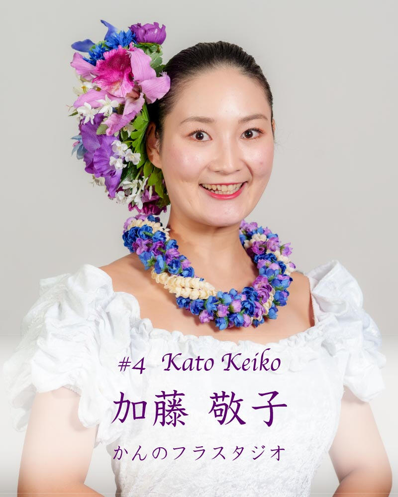 「フラ・アウアナ」で競います。優雅さ、ダンスの意味や感情を表現する能力、身だしなみや装飾品で審査されます。制限時間は4分です。