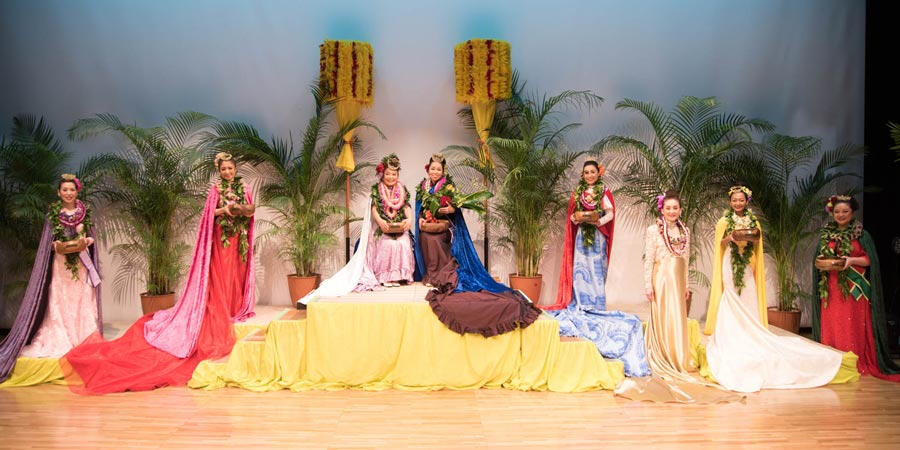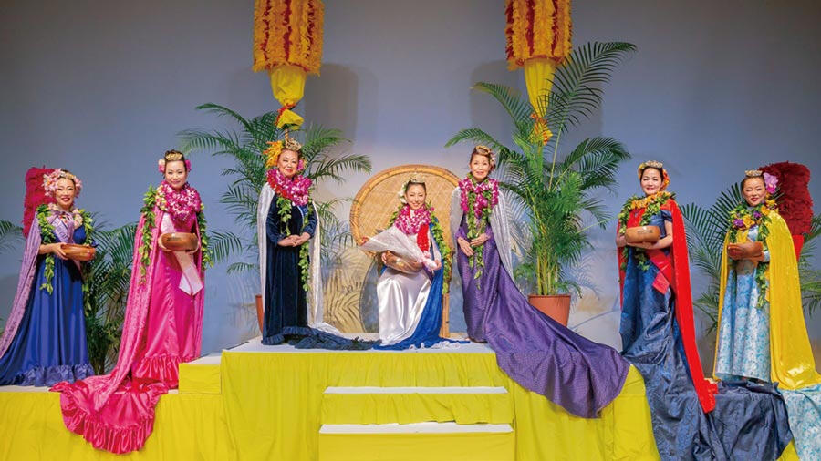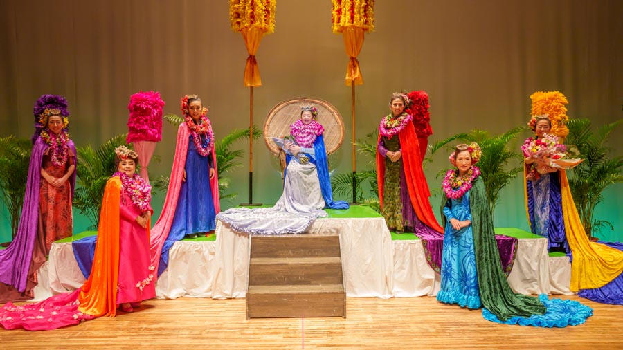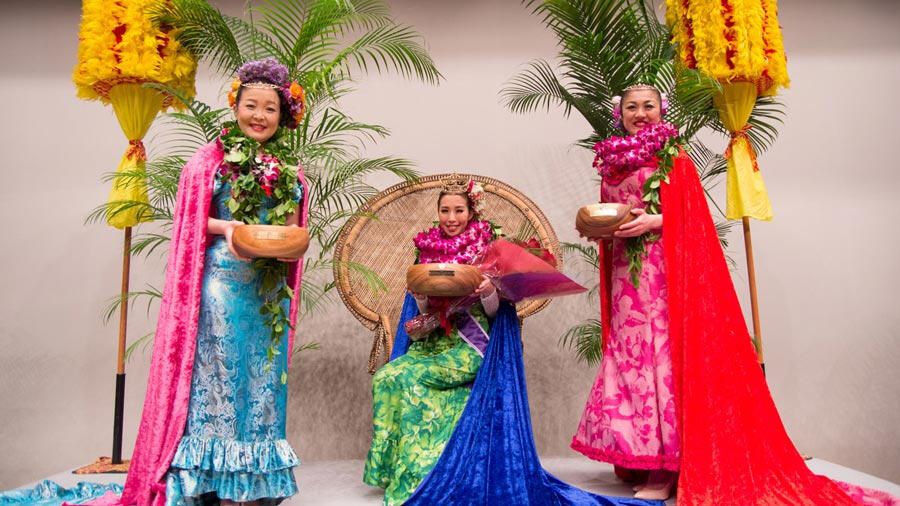 「レイ・ヒヴァヒヴァ(ヴィリ式のレイ作り)」と「クーカマッイリョ(インタビュー)」は前日に審査され、ステージ上のプログラムでは残りの4カテゴリーの公開審査が行われます。すべてのカテゴリーで満点を獲得した場合、最高で15,000ポイント(5,000×ジャッジ3名)を獲得することができます。総合得点の高いコンテスタントから